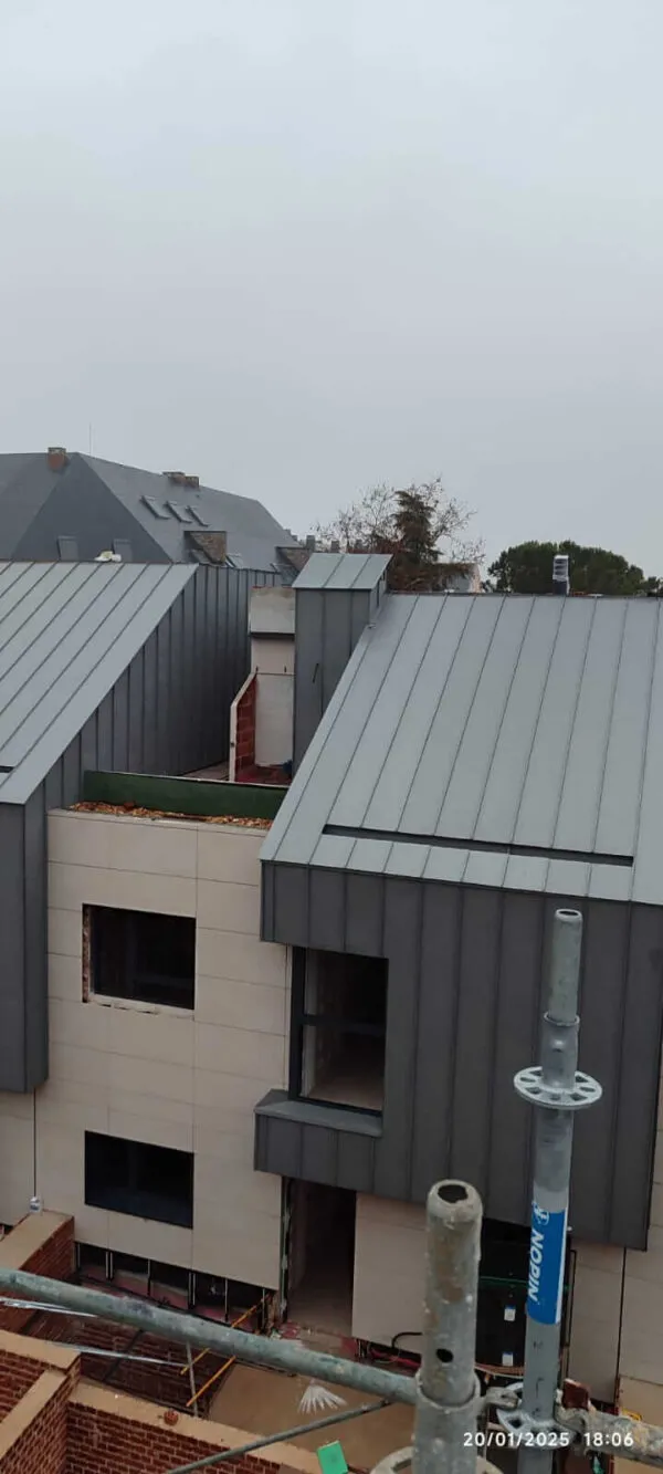 En Global Zinc hemos participado en la ejecución de las cubiertas y fachadas de 16 viviendas unifamiliares en Madrid, aportando soluciones constructivas que combinan durabilidad, eficiencia y estética moderna.
